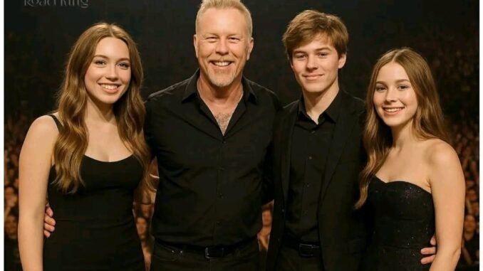 In a rare glimpse beyond the thunderous roar of stadiums and the searing riffs that define Metallica’s legacy, frontman James Hetfield has once again reminded fans that behind the leather jackets and guitars lies a man whose truest stage is home. A newly released portrait of Hetfield and his children has captured hearts across the world — not for its glamour, but for its authenticity. The photo, brimming with warmth, offers a window into the soul of one of rock’s most enduring figures: a father first, a frontman second.